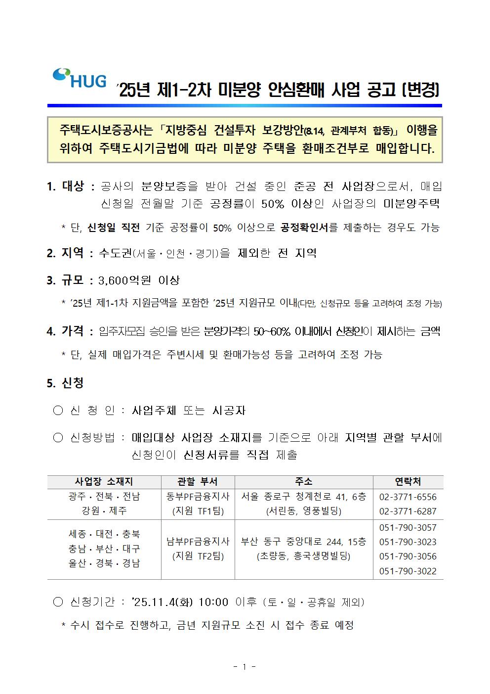 01.25년 제1-2차 미분양 안심환매 사업 공모 공고 본문(변경).hwp