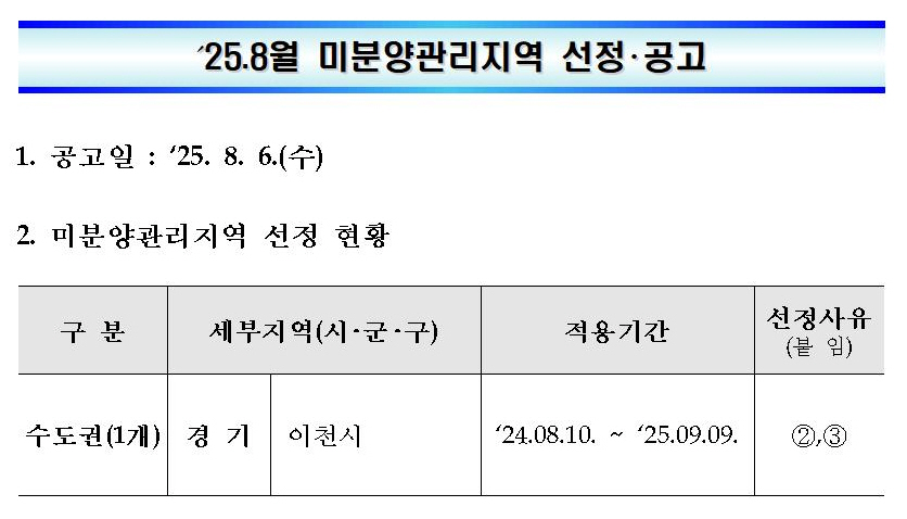 타이틀 : HUG, '25.8월 미분양관리지역 선정 공고