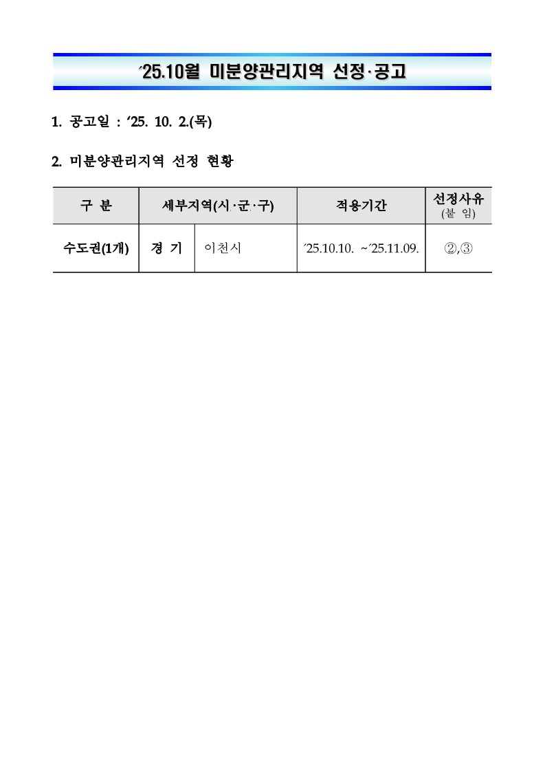 타이틀 : HUG, '25.10월 미분양관리지역 선정 공고
