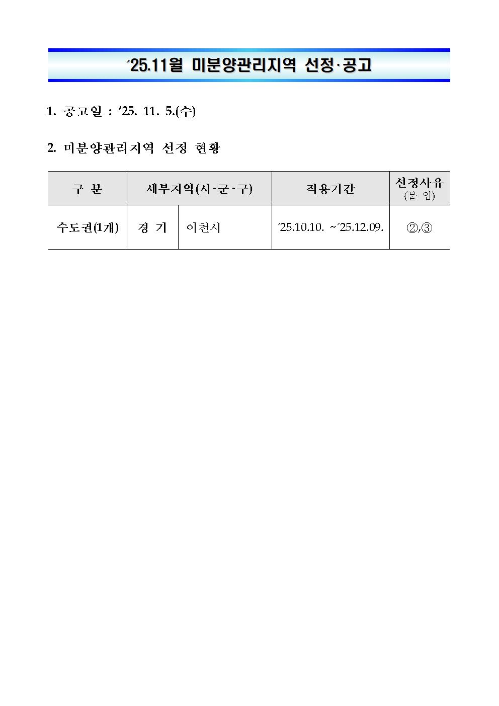 타이틀 : HUG, '25.11월 미분양관리지역 선정 공고