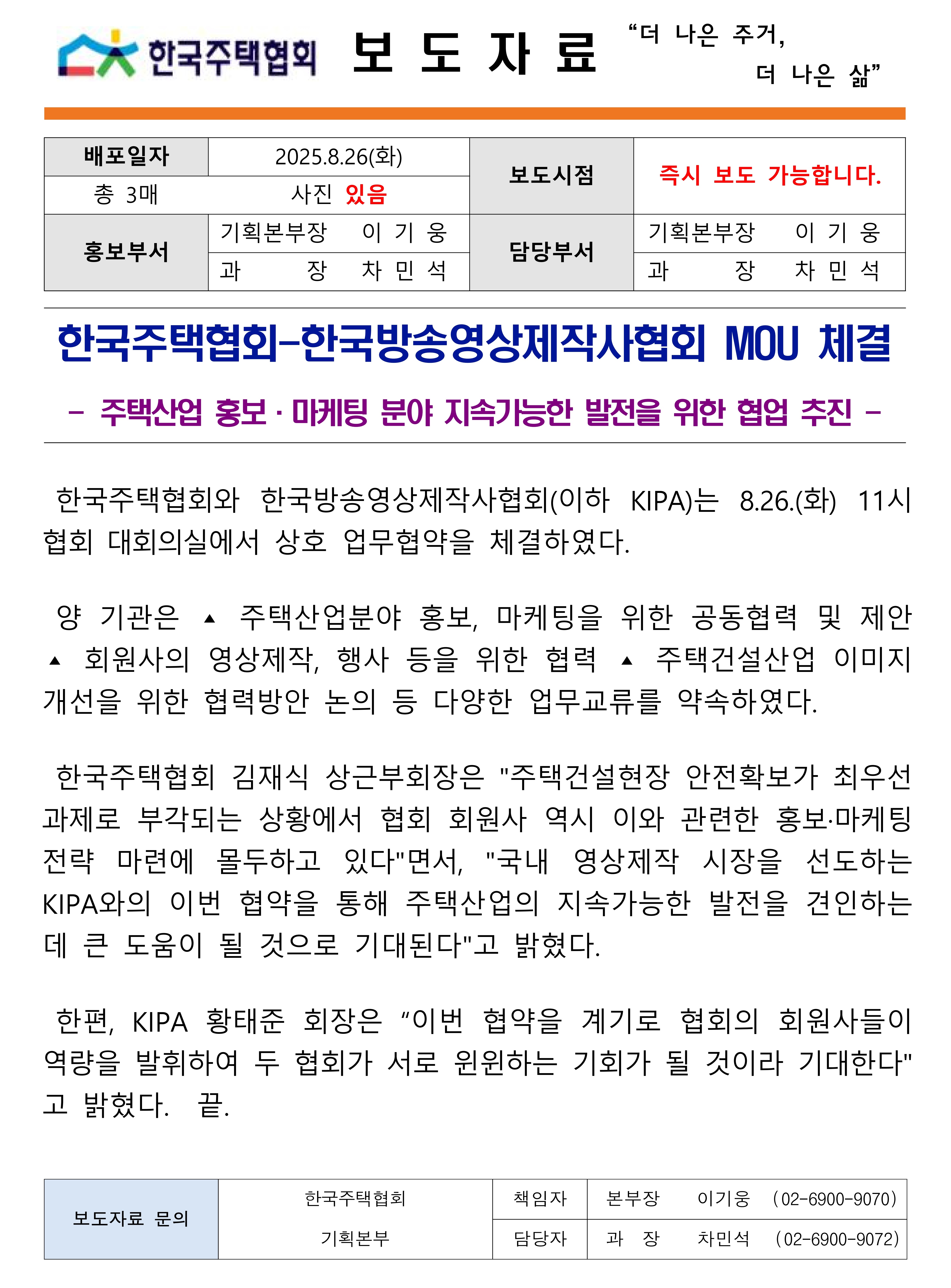 [보도자료] 한국주택협회-한국방송영상제작사협회 MOU 체결.hwp