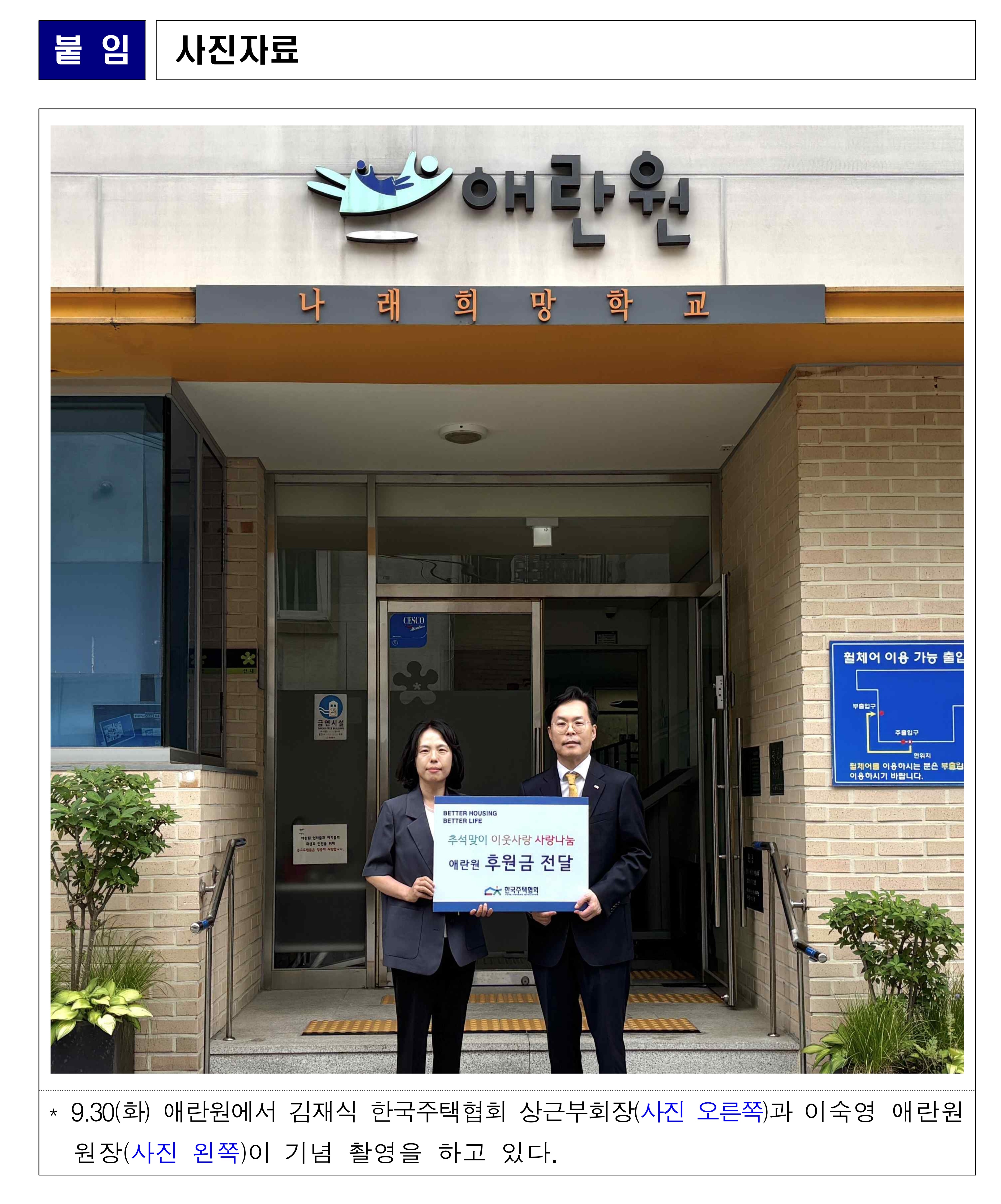 타이틀 : 한국주택협회, 추석맞이 사회공헌활동 수행